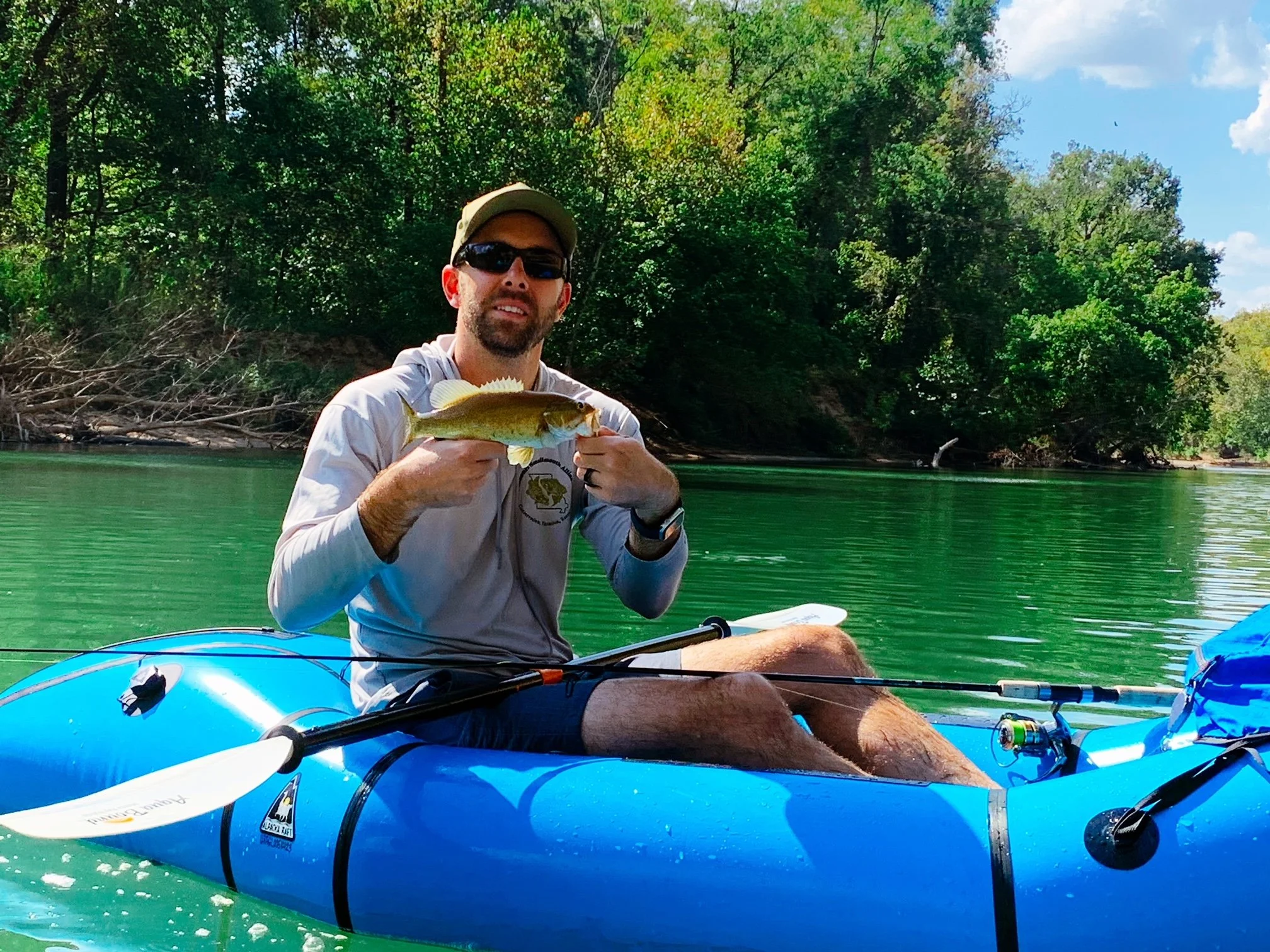 The premise was to stash and lock the bikes in the woods, pump up the rafts, tie down the gear, string the rods, and hit the water. This can all be efficiently done in ten minutes. The only unknown was what to tie on. I've fished the Meramec all my life, but I still stumble into what is the fishing equivalent to a writers block. A guide friend says to fish what you have confidence in. When packrafting, you are only bound to what you can carry. So you do your best to make an educated guess on what will work on new water. That helps solve the lure conundrum by choosing confidence patterns.